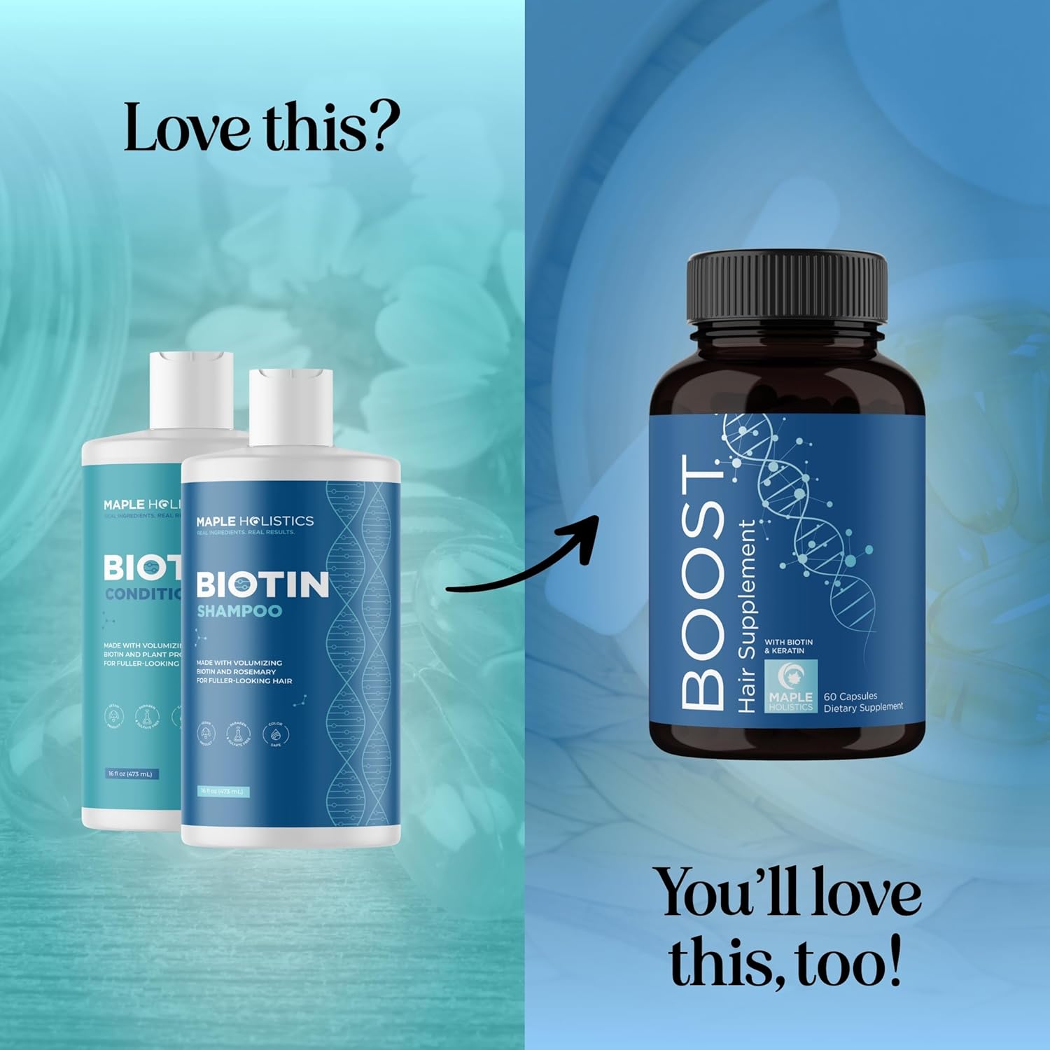 Biotin and B vitamins to nourish and strengthen hair