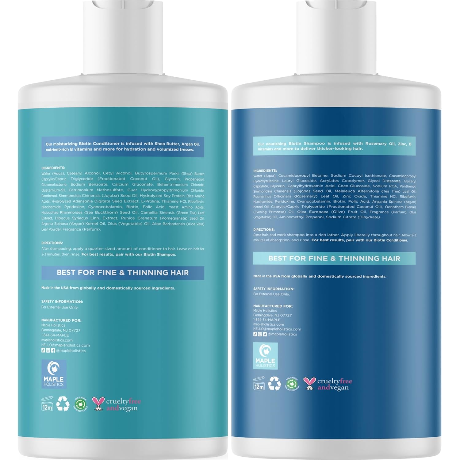 Gentle, color-safe shampoo and conditioner formulated with biotin, B vitamins, and nourishing plant proteins. Ideal for men and women, this sulfate, paraben, and silicone-free set helps volumize thinning hair, strengthen strands, and promote healthier-looking hair. Infused with natural ingredients, it supports fuller, shinier hair while being safe for daily use.