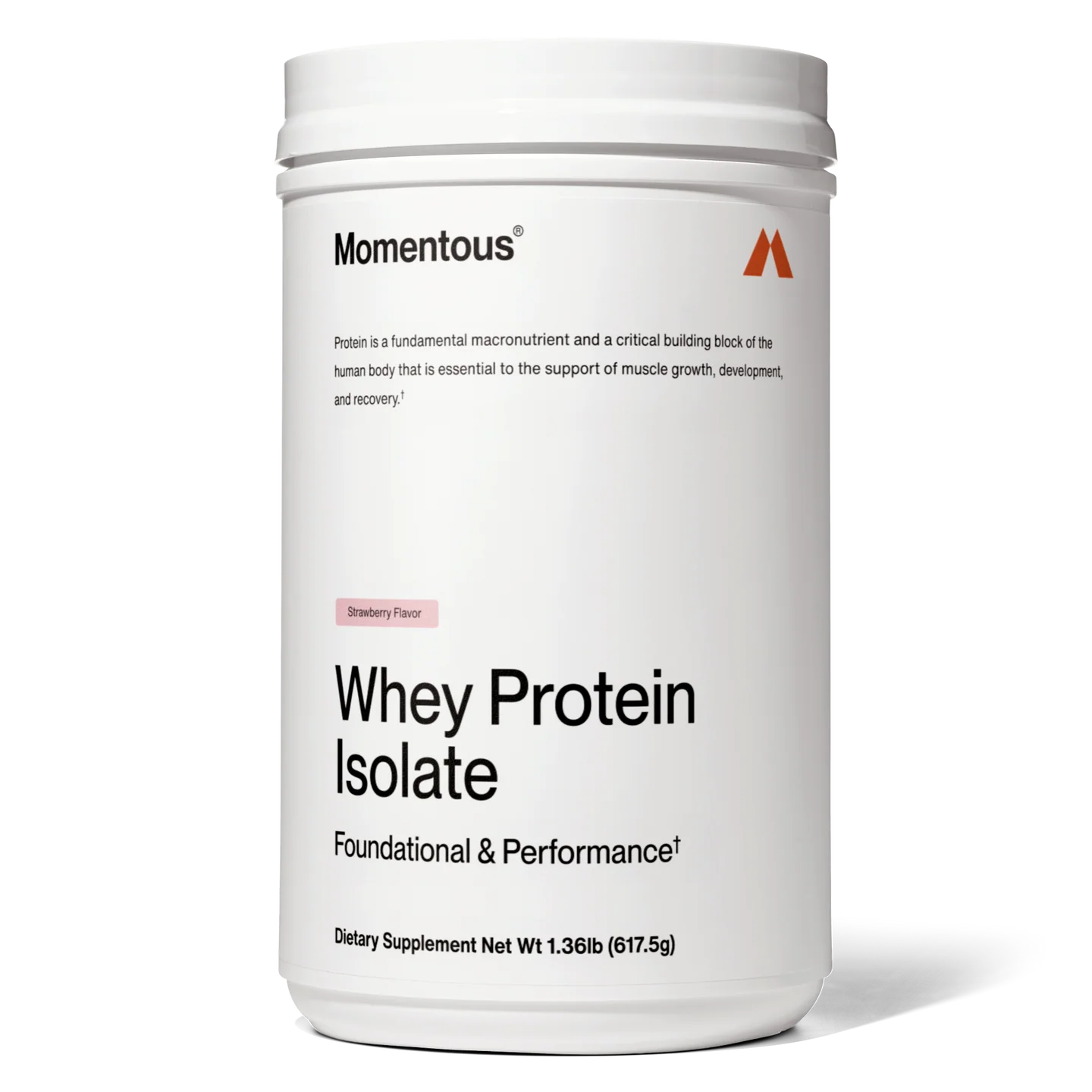Momentous Essential provides 20g of grass-fed whey isolate protein per serving, sourced from European dairy. This strawberry-flavored formula features ProHydrolase®, a premium enzyme blend, and is cold-processed to preserve protein integrity. NSF Certified for Sport® and gluten-free, it blends easily with water, almond milk, or your favorite smoothie. Designed for everyday use, it’s a simple, clean addition to your daily nutrition routine.